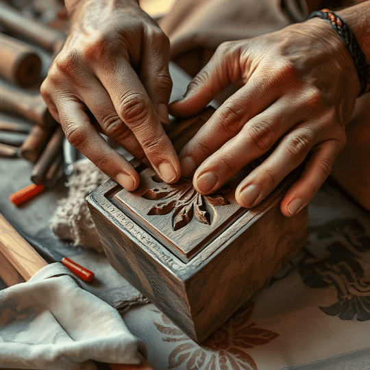 - Hand-carve motifs into wooden blocks